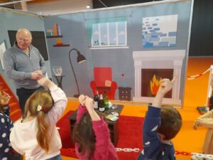 Les pièces de la maison étaient reproduites en réel et présentaient des dangers. Les enfants devaient les repérer et expliquer pourquoi ils représentaient un danger. Cette exposition interactive a permis à chaque enfant de s’exprimer sur ce qu’il voyait ou sur son vécu dans son quotidien.